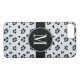 Das elegante Design ist mit einem schwarz-silbergrauen Schnee-Leopardendruckmuster, einem silberfarbenen schwarzen Band und einem weißen Monogramm auf einem silberfarbenen schwarzen Kreis, ausgestattet. Sie können dieses Element für sich selbst oder einen geliebten anpassen, indem Sie das Monogramm Initial ändern.