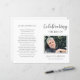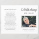 Dieses elegante Foto-Gedenkprogramm mit seinem grauen und schwarzen Text ist eine wunderbare Möglichkeit, sich an einen geliebten Menschen während der Feier des Lebensservice zu erinnern. Wenn Sie sie empfangen, falten Sie sie einfach in der Mitte zusammen und bieten sie den Festgästen an.