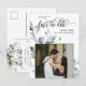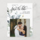 Elegantes grünes Blätter QR Code Foto Save the Dat Ankündigungspostkarte