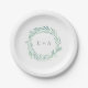 Elegantes Grünes Wasserfarben-Kränz-Monogramm Hoch Pappteller