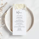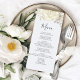 Elegantes Hochzeitmenü Weiße Blumenschrift Menükarte