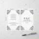 Nadine Wedding Program Foldover (Schwarz): Lass deinen Gästen, mit deiner Hochzeitsordnung zu folgen, mit dieser einzigartigen Vintagen Ecken Hochzeitsvorlage in Gold. Diese werden sich entfaltet (ohne Falten). Die Designfarbe ist Set in einem reichen Schwarz, aber Sie können die Farbe des Designs ändern, indem Sie Ihre Hintergrundfarbe ändern. **WIE SIE IHRE DESIGN-FARBE ÄNDERN** 1) Klicken Sie auf den Button "Personalisieren". 2) Klicken Sie unten auf den Link "ClICK TO CUSTOMIZE FURTHER". Dann haben Sie die Möglichkeit, Ihre "HINTERGRUNDFARBE" in Ihre Hochzeitsfarbe zu ändern. Vergessen Sie nicht, Ihre Textfarbe an Ihr Design anzupassen.