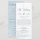 Feiern Sie Ihren großen Tag stilvoll mit einem atemberaubenden Pale Light Blue Wedding Programm! Erleben Sie die Schönheit Ihrer besonderen Feier mit dieser einmaligen Einladung. Das elegante Drehbuch und die zarten Blumendesigns geben Ihrer Hochzeit einen Hauch von der magischen Frühlingszeit und werden für die kommenden Jahre geschätzt.