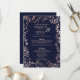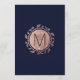 Elegante, moderne und schicke Imitate Rose Gold und trendige marineblaue Blumenmuster, Hochzeitskarten. Dieses klassische und raffinierte Design ist perfekt für das trendige und stilvolle Ehepaar. Personalisieren Sie Ihre eigene Nachricht auf der Vorderseite sowie ein individuelles Monogramm auf der Rückseite. Das gesamte Foto-Druckdesign.