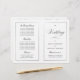 Dieses Programm ist eine 8.5 x 11-Seite, die Sie zum Zusammenbauen zusammenfalten müssen. Der Zeilenrand verblasst an der Ecke, und dies ist beabsichtigt, um den Skriptstil anzupassen. Klassisches Hochzeitsprogramm in Schwarz-Weiß mit moderner Touch mit dem eleganten Schriftzeichen "Hochzeit" auf dem äußeren "Cover".