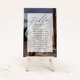 Elegante moderne Hochzeitskarten verfügen über ein vollflächiges, vertikales Foto mit einer Tischnummer, die auf einem rechteckigen, weißen Element mit schick kalligraphischem Schriftzeichen überlagert ist. Personalisieren Sie mit Ihrer Tischnummer und Ihren individuellen Gastnamen.