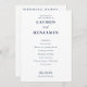 Dies ist ein Bild im minimalistischen Stil mit einem eleganten Hochzeitszeremonie-Programm für die Vereinigung von Lauren und Benjamin. Das Design verwendet eine saubere, klassische Schrift in Navyblau auf weißem Hintergrund, die Eleganz und zeitlose Schönheit ausstrahlt. Es listet die Abfolge der Ereignisse während der Zeremonie mit Präzision und Anmut auf, einschließlich des Prozessionsmarschs, des Austauschs der Gelübde, der Einheitzeremonie und mehr. Perfekt für Paare, die zurückhaltende Eleganz schätzen und ihren Gästen ein raffiniertes Erinnerungsstück bieten möchten.