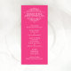 Elegante und formelle Dinner-Menükarten mit einem farbigen Pop mit weißem Rückdruck. Personalisieren Sie Ihre Termine und Menüdetails. Bestellen Sie Karten auf den Tellern des Abendessens oder packen Sie sie in Servietten an jedem Ort ein, um ein stilvolles Ambiente zu schaffen. Heiß / magenta rosa Hintergrundfarbe.