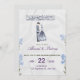 Eine schöne islamische Hochzeitseinladung mit zarten blauen Blumenakzenten und einem süßen Cartoon-Brautpaar. Perfekt für Nikah oder traditionelle muslimische Hochzeiten. Vollständig anpassbar mit Ihren Namen und Datum.