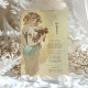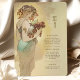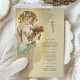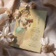 Fügen Sie Ihrer Hochzeit eine Touch von Vintager Eleganz mit dieser atemberaubenden Art Nouveau inspirierten Menükarte hinzu. Dieses doppelseitige Design besticht durch eine bezaubernde Herbstpalette in erdigen Tönen, darunter die Farbtöne goldgelb, gedämpftes Olivgrün und warmes Braun. Die Vorderseite zeigt eine bezaubernde Abbildung einer Frau, die eine üppige Fruchternte hält, die ein Gefühl von Wohlstand und Wärme hervorruft. Ihr fließendes Gewand und ihr aufwändiges Accessoire prägen das Wesen des Jugendstils, das an Alphonse Muchas Werk erinnert. Im hinteren Teil wird die Speisekarte in einem raffinierten Schriftart präsentiert, der von zarten Dekoakzenten gerahmt ist. Ideal für Hochzeitsfeiern mit klassischem, Vintagem oder Herbstthema. Die Speisekarte verleiht Ihrem Tisch zeitlose Schönheit.