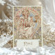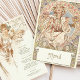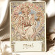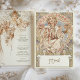 Dieses wunderschöne Dinner-Menü zeigt ein exquisites Jugendstil-Design mit Illustrationen, die an Alphonse Muchas ikonischen Stil erinnern. Die Vorderseite des Menüs hebt eine ruhige Frau hervor, umgeben von faszinierenden Mustern und Blumenmotiven in sanften, erdigen Tönen von Sahne, gedämpftem Gold, Salbei-Grün und zarten Pastellfarben. Die Vintage Eleganz der Illustration erinnert an eine zeitlose Schönheit, die sich perfekt für eine klassische oder kunstlich inspiriert Hochzeit eignet. Auf der Rückseite des Hotels befindet sich ein hübsches Bild einer gläsernen Frau, die eine feierliche Touch mit einem detaillierten Abendmenü in einem eleganten Schriftart bietet. Ideal für Paare, die eine künstlerische und Vintage Ästhetik für ihren besonderen Tag suchen.