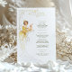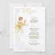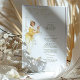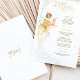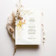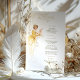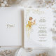 Dieses wunderschöne Hochzeitsmenü ist ein atemberaubendes Beispiel für Jugendstil-Eleganz, mit einer anmutigen Frau in einem fließenden goldenen Gewand, inspiriert durch den ikonischen Stil von Alphonse Mucha. Die sanften Farbtöne Gold, Creme und Beige ergänzen das aufwändige Linienwerk und den Vintagen Charme des Designs. Die zarten Blumenmotive und Naturmotive verleihen den Paaren, die die klassische Kunst in ihre Hochzeit einbauen möchten, eine raffinierte Atmosphäre. Auf der Rückseite des Menüs befindet sich ein minimalistisches "Menu"-Design, das das elegante und künstlerische Thema verbindet. Ideal für Vintage, klassische oder kunstlich inspiriert Hochzeiten, fügt dieses Menü Ihrer Veranstaltung eine Touch von altem Charme hinzu.