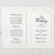 Dieses Programm ist eine 8.5 x 11-Seite, die Sie zum Zusammenbauen zusammenfalten müssen. Die Goldgrenze ist ein gedrucktes Goldbild. Klassisches Hochzeitsprogramm in Schwarz-Weiß mit moderner Touch mit dem eleganten Schriftzeichen "Hochzeit" auf der äußeren "Abdeckung" und der Goldgrenze.