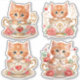 Mit diesem Set aus vier Aufklebern mit einem zauberhaften, roten Kätzchen, das in einem luxuriösen Teakup mit aufwändigen Golddetails sitzt und von sanften Blumenakzenten umgeben ist, können Sie Ihr Kunsthandwerk, Ihre Geschenke und Ihre Schreibwaren stärken. Diese Aufkleber eignen sich perfekt für Katzenliebhaber und Fans von skurrilen, eleganten Designs und erleben ein romantisches und zauberhaftes Ambiente. Ideal für Scrapbooking, Geschenkverpackung oder die Dekoration von Notebooks und Briefen, fügen sie jedem Projekt eine Touch von Magie und Raffinesse hinzu. Diese hochwertigen Aufkleber eignen sich perfekt für Feiertage, Geburtstage oder einfach nur zum Verweilen.