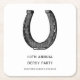 Elegante klassische Schwarz-weiße Pferderennen Derby Party Papier Untersetzer mit einer Vintagen Horseshoe Illustration. Alle Textelemente können so geändert werden, dass dieses Design auch für andere Reitveranstaltungen verwendet werden kann. Verwenden Sie das Entwurfstool, um die Bild- und Textelemente zu skalieren oder den Schriftart zu ändern.