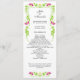© Sozialite Designs. Ein elegantes Blatt, Blumen und Wirbel grenzen mit einer schönen Farbkombination aus Grün, Fuchsia und Gelb Hochzeitsprogramm. Schriftart-Stil, Text und Papiertyp können geändert werden. Brauchen Sie Hilfe bei der Anpassung oder einer anderen Farbkombination für Ihre Veranstaltung? Bitte zögern Sie nicht, sich bei Socialite Designs mit Ihren Wünschen in Verbindung zu setzen.
