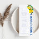 Begleiten Sie Ihre Gäste durch Ihren besonderen Tag mit diesem eleganten Lemon & Blue Mediterrane Hochzeitsprogramm. Dieses Design mit lebhaften Zitronen, üppiger Vegetation und klassischen blauen Akzenten spiegelt den Charme einer sonnenverwöhnten Hochzeit in der Toskana oder an der Küste Europas perfekt wider. Dieses individuell gestaltbare Programm eignet sich ideal für Urlaubs-, Rustikal- oder Hochzeitsthemen und Kontur Ihrer Zeremonie, Ihrer Hochzeitsfeier und des Empfangs. Fügen Sie Ihrer Hochzeit eine Touch mediterraner Eleganz mit diesem zeitlosen Sake hinzu!
