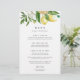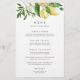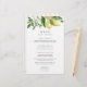 Mit dieser eleganten Zitronenblumenkarte von Redwood & Vine Design Co. mit Aquarelllemonen, weißen Blumen und stilvoller Typografie eignet sich dieses Design perfekt für ein Brautparty, eine Hochzeit, ein Probe-Dinner oder eine Sommerfeier. Eine frische und raffinierte Art, Ihre Veranstaltung zu präsentieren.