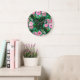 Elegantes Leopard Print Pink Blumengrün Design Große Wanduhr