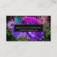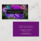 Schöne, elegante lila, fuchsienrosa und grüne blumengeschmückte Rose und Glitzer Pfauenfederhalter Visitenkarte. Personalisieren Sie dies einfach, indem Sie Ihre eigenen Daten hinzufügen, um es zu Ihrer eigenen einzigartigen Visitenkarte zu machen.