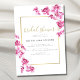Zweige lila Orchideen, handbemalt in Aquarellfarbe, verschmelzen in dieser schlichten, eleganten und dennoch schicken Brautdusche mit einem klassischen, traditionellen Goldrahmen. Der goldene Hauch in der Kalligraphie und der diskrete goldene Rahmen (ein digitaler Effekt) verleihen diesem festlichen, aber gedämpften Farbenspiel eine besondere Note.
