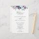 Elegantes Hochzeitsprogramm mit zarten Aquarellfarben, Blumendetails auf einer schönen Mischung aus Blau, Violett und lila Farbtönen. Moderne handgeschriebene Kalligrafieelemente. Möglichkeit, Textänderungen und Anpassungen durch Auswahl weiterer Anpassungen vorzunehmen. Front mit den Details der Hochzeitsfeier, zurück mit den Namen der Hochzeitsfeier und danke Ihnen für die Nachricht für Ihre Gäste. Elegantes modernes Ambiente. Teil unserer Kollektion "Lila und blaue Blüten" mit einer Vielzahl von Produkten zur Koordination. Die gesamte Sammlung finden Sie unter: https://www.zazzle.com/collections/purple_and_blue_blossoms_collection-119752419948427787