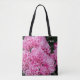 Erhöhen Sie Ihren täglichen Stil mit dieser exquisiten All-Over-Print-Tasche mit einem professionellen Foto von rosa Pfingstrosen in voller Blüte. Dieses doppelseitige Design zeigt eine intime, hochkontrastige Nahaufnahme auf der Vorderseite - akzentuiert durch ein elegantes Serifen-Monogramm - und eine breitere botanische Ansicht auf der Rückseite.