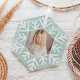 Fügen Sie Ihrem Baum ein fröhliches Licht mit diesem eleganten minimalen Imitat mint blauen Glitzer Schneeflocken Foto Hexagon-Ornament aus Glas. In unserem Design finden Sie einen Imitat-Minz-blauen Glitzer-Hintergrund mit einem Schneeflocken Foto Rahmen, um Ihr Foto zu zeigen. Ein wunderschönes Foto-Sake-Ornament, das sich perfekt eignet, um mit Freunden und der Familie zu teilen.