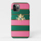 Stilvolle Mit Monogramm iPhone-Hülle mit individuell einstellbaren Rosa- und grünen Streifen - Elegante Schutzhülle Mit diesem mit Monogramm iPhone-Gehäuse stärken Sie Ihr iPhone im eleganten Design in Rosa und Grün gestreift mit einem luxuriösen Motiv aus Goldblatt. Dieses Gehäuse bietet eine individuell anpassbare Textfassung und ein optionales Blatt-Design, das es perfekt für diejenigen macht, die personalisierte und einzigartige Accessoires schätzen. Dieser mit hochwertigen Materialien gefertigte Gehäuse bietet einen außergewöhnlichen Schutz für Ihr Gerät und präsentiert eine modische Ästhetik. Die rosa und grüne Farbpalette versinnbildlicht ein raffiniertes Studentinnenverbindung-Thema und ist somit eine ideale Wahl für Mitglieder, die Eleganz und Exklusivität schätzen. Dieses iPhone-Gehäuse wurde für Modebewusste konzipiert und vereint Funktionalität mit einer Touch von Luxus. So wird Ihr Gerät sicher und stilvoll bleibe. Egal ob Sie an einer feierlichen Veranstaltung teilnehmen oder einen lässigen Ausflug genießen, dieser Fall ist ein Must-Have Accessoire für diejenigen, die Liebe haben, sich durch raffinierten Flair zu überzeugen.
