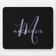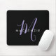 Elegantes, modernes Black Lavender Script Monogram Mousepad