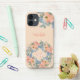 Elegantes, modernes Peach Floral Wreath Monogramm iPhone 12 Mini Hülle