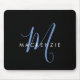 Elegantes, modernes Schwarz-Blau-Script-Monogramm Mousepad
