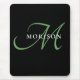 Elegantes, modernes Schwarz-Grün-Script-Monogramm Mousepad