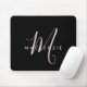 Eleganter Modern Black Blush Pink Script Monogram Mouse Pad. Eine elegante Rosa-Schriftzeichen-Monogramm kombiniert mit einem weißen San-Serif-Schriftart verleiht dem Ganzen einen zeitgemäßen Look.
