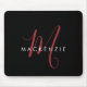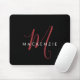 Eleganter Modern Black Script Monogram Mouse Pad. Ein elegantes Rot-Skript-Monogramm kombiniert mit einem weißen San-Serif-Schriftart verleiht dem Ganzen einen zeitgemäßen Look.