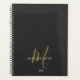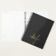 Eleganter moderner Black Gold Script Monogram Planer. Ein elegantes Goldskriptmonogramm in Verbindung mit einem weißen San-Serif-Schriftart sorgt für ein zeitgemäßes Aussehen.
