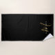 Elegante moderne Schwarz-Gold-Script Monogram Beach Handtuch. Ein elegantes Goldskriptmonogramm in Verbindung mit einem weißen San-Serif-Schriftart sorgt für ein zeitgemäßes Aussehen.