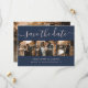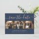 Elegante, moderne marineblau-blaue Hochzeitscollage und ein modernes Script-Schriftart sichern die Datumskarten mit 4 Fotos. Diese stilvolle Foto-Hochzeit kann leicht personalisiert werden. Matching-Elemente verfügbar. Kundenspezifische Anfragen sind willkommen.