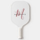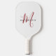 Elegantes, modernes, weißes Mongram Pickleball Paddle . Ein elegantes Rot-Script-Monogramm kombiniert mit einem sauberen schwarzen San-Serif-Schriftart verleiht dem Ganzen einen zeitgemäßen Look.