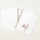 Eleganter moderner, weißer, roter Script Monogram-Planer. Ein elegantes Rot-Script-Monogramm kombiniert mit einem sauberen schwarzen San-Serif-Schriftart verleiht dem Ganzen einen zeitgemäßen Look.