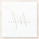 Eleganter, moderner White-Script Monogram-Untersetzer. Ein elegantes Goldskriptmonogramm kombiniert mit einem sauberen schwarzen San-Serif-Schriftart verleiht dem Ganzen einen zeitgemäßen Look.