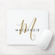 Elegante Modern White Script Monogram Mouse Pad. Ein elegantes Goldskriptmonogramm kombiniert mit einem sauberen schwarzen San-Serif-Schriftart verleiht dem Ganzen einen zeitgemäßen Look.