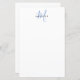 Elegantes, modernes, weißes, blaues Script Monogram Stationery Paper. Ein elegantes blaues Skript-Monogramm kombiniert mit einem sauberen schwarzen San-Serif-Schriftart verleiht dem Ganzen einen zeitgemäßen Look.
