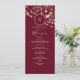 Elegantes, bohobisches, botanisches, rustikales Rose-Gold und bordeauxfarbenes Hochzeitsmenü mit Monogramm, vergoldetem Blumenriss, Lichter mit Saitenreihen und moderner Kalligraphie-Schrift. In Kombination mit dem Wachs-Siegel-Aufkleber aus derselben Kollektion, ist es in der Lage, ein stärkeres Spiegelbild der Persönlichkeit, der Liebe und der Einzigartigkeit des Paares zu schaffen.
