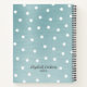 Ein eleganter, blau-metallischer Hintergrund mit weißen Polka-Punkten schmückt dieses Notizbuch. Andere Farben sind verfügbar. Personalisieren Sie es mit Ihrem Namen auf der Vorder- und Rückseite. Macht ein großartiges Geschenk. Entworfen für Sie von BlackBerry Boulevard.