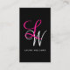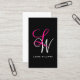 Die weiße und rosafarbene Monogramm-Visitenkarte ist mit einem trendigen Monogramm mit Initialen und einem weißen und rosa Namen auf schwarzem Hintergrund versehen.