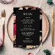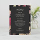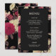 Das schöne, blumengeschmückte klassische Hochzeitsmenü besticht durch ein Vintages botanisches Muster aus roten und rosa Blume auf elegantem schwarzen Hintergrund