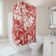 Dieser stilvolle Duschvorhang weist ein elegantes botanisches Muster Vintager abstrakter Blumenbilder in Rot und Weiß auf.