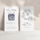 Elegantes Navy Blue Monogram QR Code Floral Wappen Visitenkarte