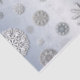 Elegantes Gewebepapier mit stilisierten Schneeflocken auf silberem Hintergrund.